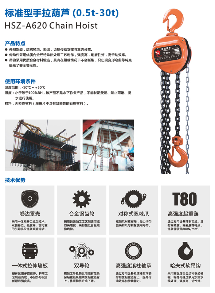 8.起重鏈條是特殊合金鋼制作并經(jīng)過熱處理,不能私自進行焊接或改裝。