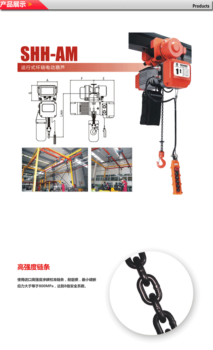 8.起重鏈條是特殊合金鋼制作并經(jīng)過熱處理,不能私自進行焊接或改裝。