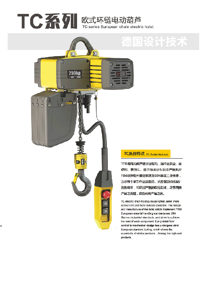 雙速起升速度為標(biāo)準(zhǔn)配置,備有吊鉤式與吊耳式兩款懸掛方式,也可直接與電動小車吊銷連接,使其連接更為完美。