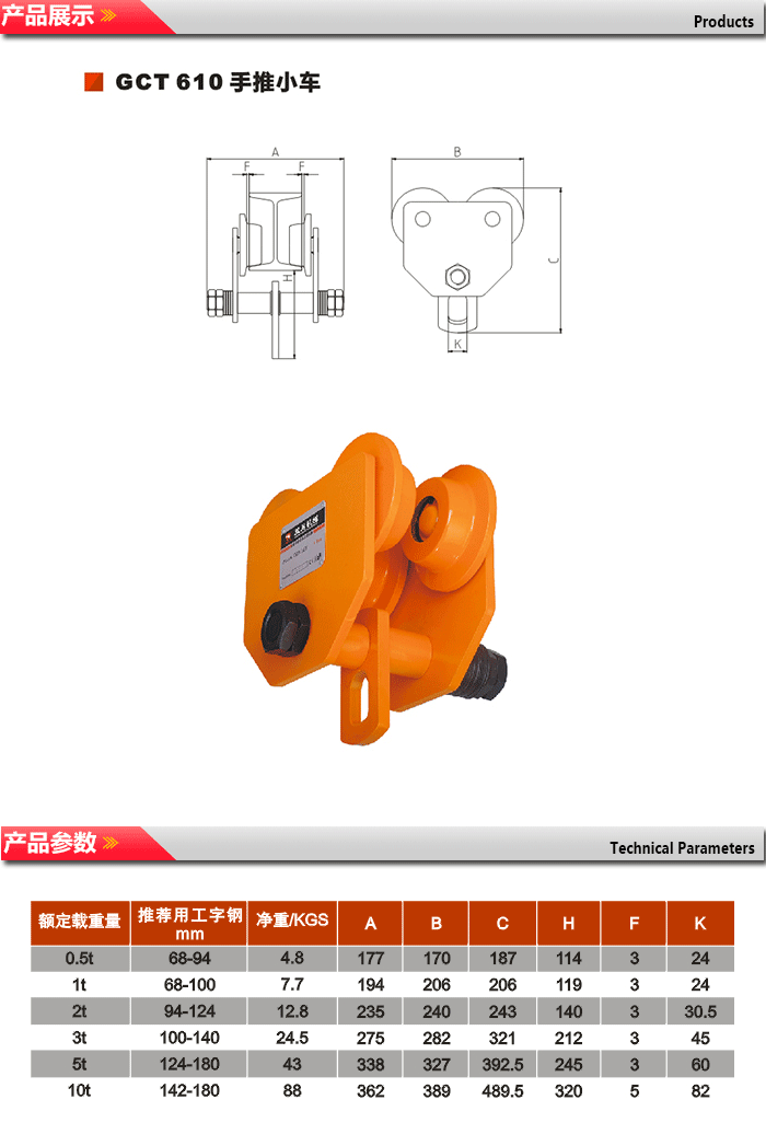 GCL/GCT810系列小車選用了全新的高強度低合金結(jié)構(gòu)鋼,確保4倍安全載荷,輕巧、安全、安裝方便、是目前最為輕巧小車之一。