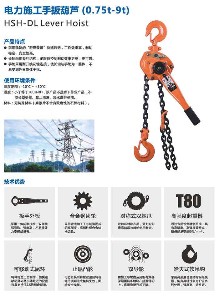 8.起重鏈條是特殊合金鋼制作并經過熱處理,不能私自進行焊接或改裝。